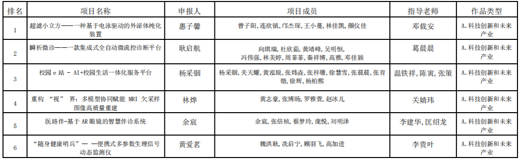 2026年“挑战杯”中国大学生创业计划竞赛健康与环境工程学院初赛已圆满结束,经学生自行申报,现场答辩,共计有6个参赛项目晋级校级复赛,具体信息如下: